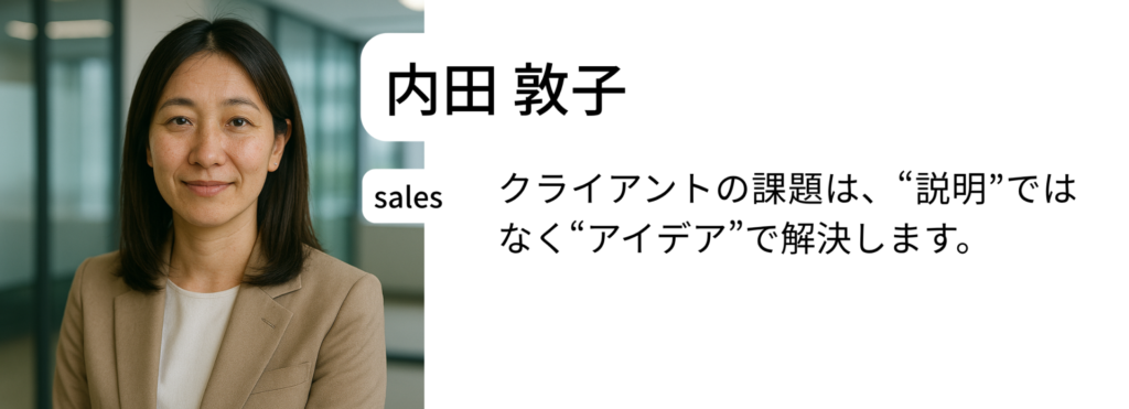 単に“売る”のではなく、企業が抱える課題を整理し、最短距離で成果につながる 仕組みを一緒に組み立てること を大切にしています。